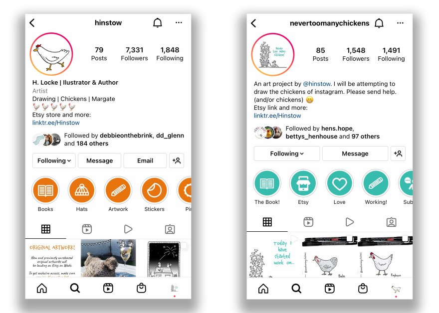 This started in Feb 2020, right before the first UK lockdown, where for some reason I decided it would be a fun challenge to draw the various Chickens on Instagram, with their own accounts or featured on their owners (..parent’s..?) account.