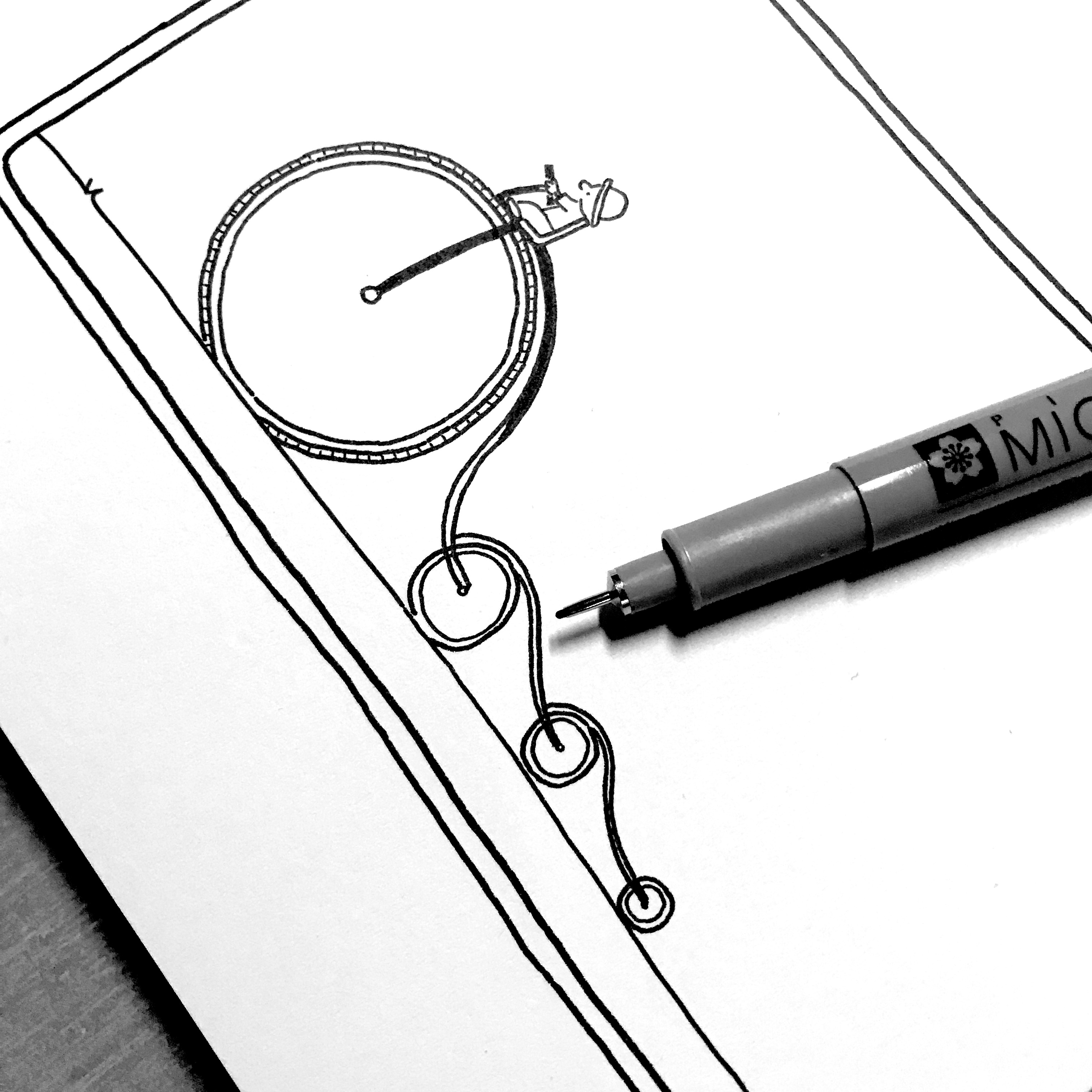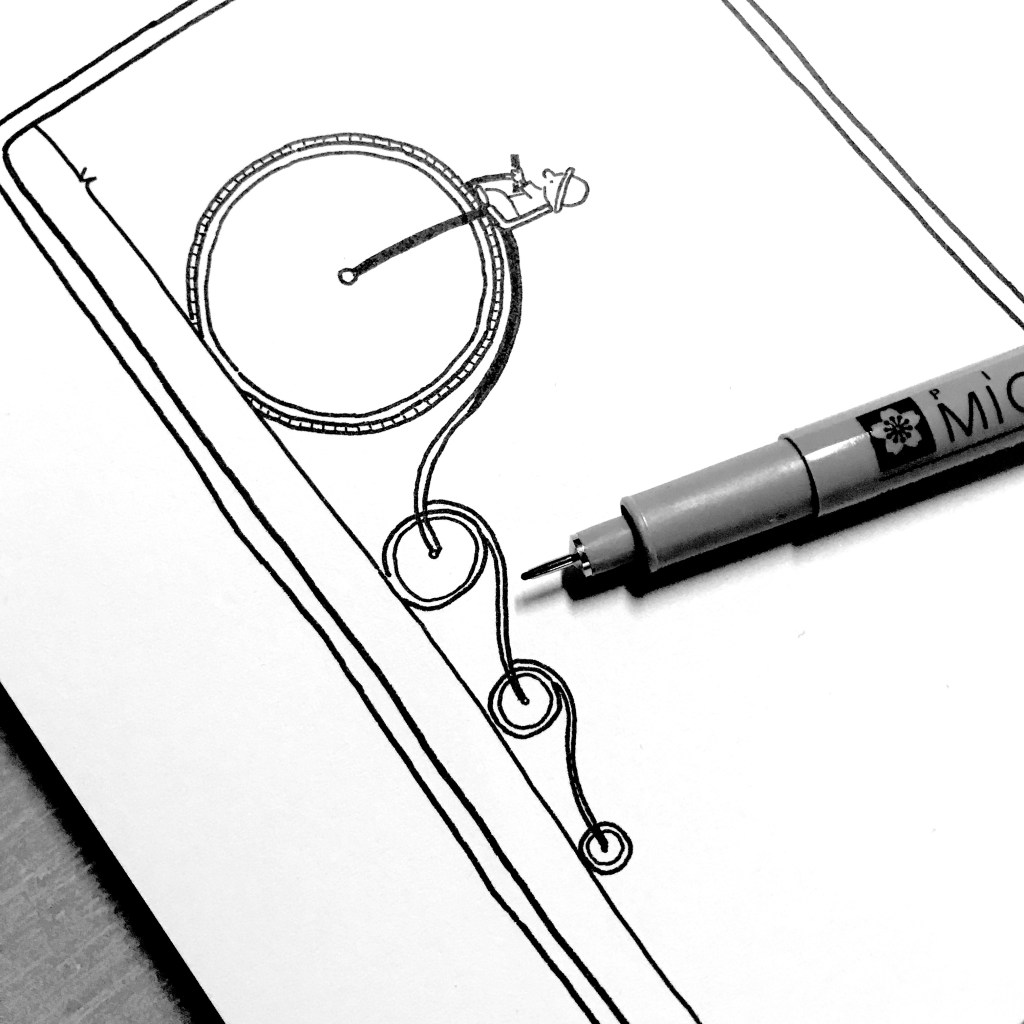 As far as each day’s drawing, I used one of my standard exercise books to draw one or several preliminary sketches for each prompt.