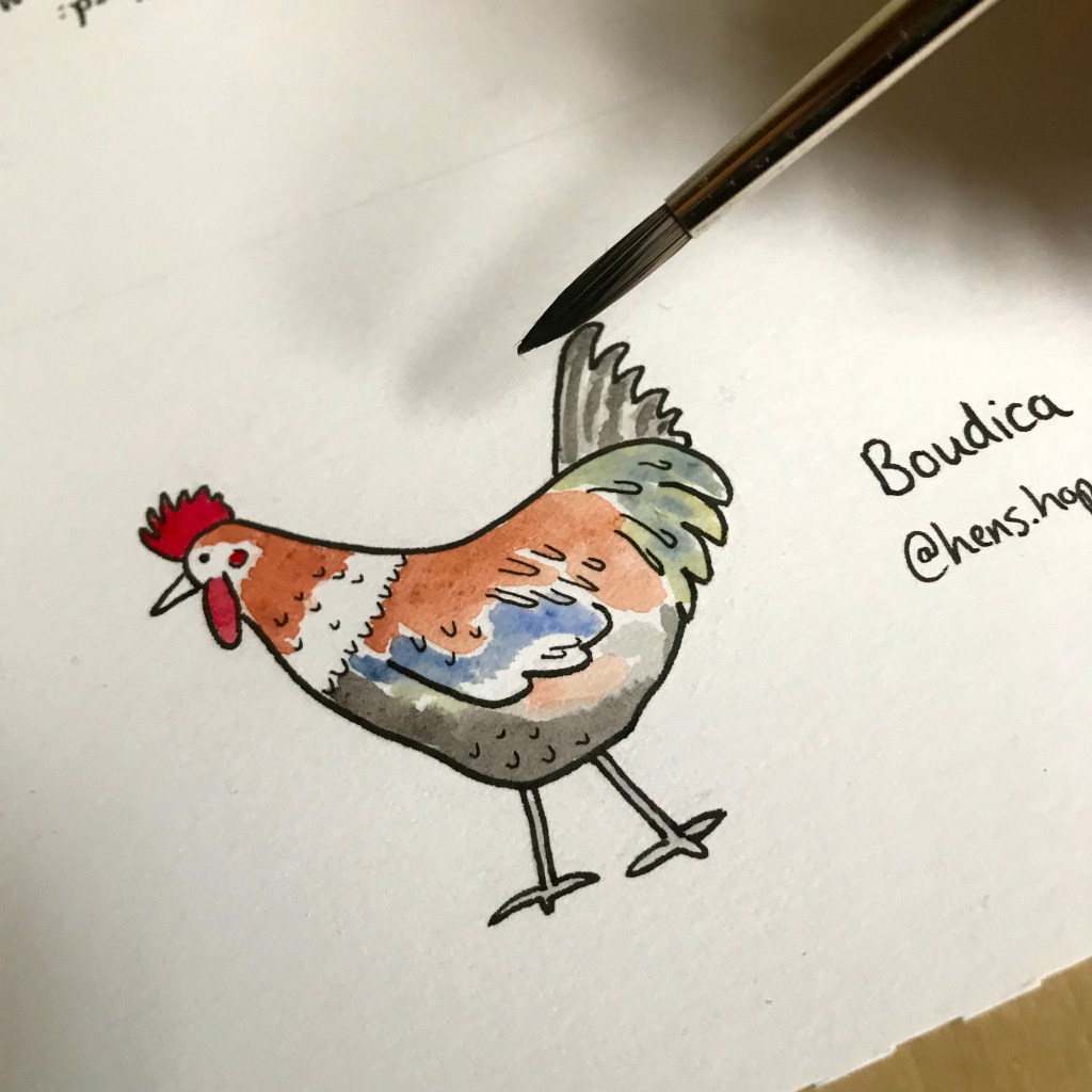 Today I’m sharing my approach to watercolour and ink drawing which I use for my instagram project, @NeverTooManyChickens.