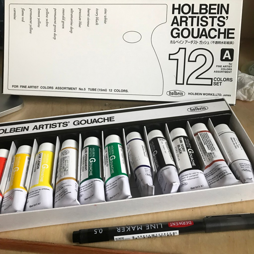 From there I just attempt to match the colours as well as I can. I have some key go-to colours from the Holbein Artists Gouache set that I have set up in my Daisy Palette.