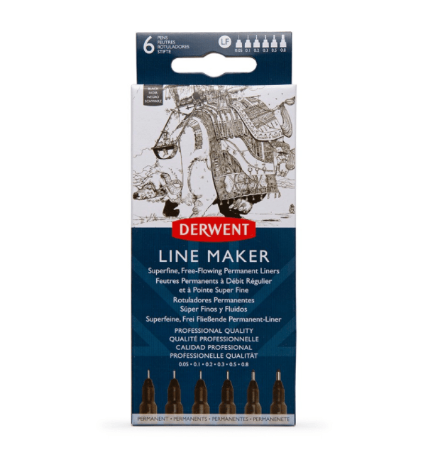 A late addition to my suite of pens is the Molotow Blackliner – but oh my these are delicious. I think I was gifted some to try and fell in love. They are really dark black and flow really well. I used them for my entire book The Wizards of Cattywumpus because they were just a joy to use. A little harder to control the ink flow, so I still stick with my Microns for day to day use, but I adore these.