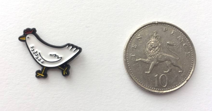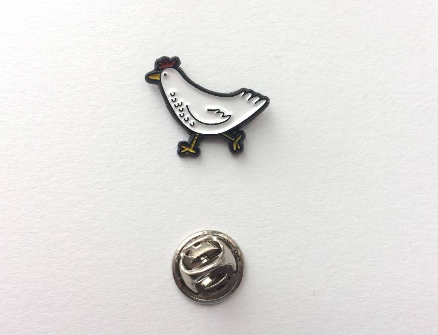 As an experiment, I recently turned one of my cartoon characters into a physical badge or pin. This was new for me, as most of my work stays resolutely 2D, with the exception of that series of eggshells back in 2014. So I guess it’s only appropriate that the character I chose to transmogrify was a chicken.