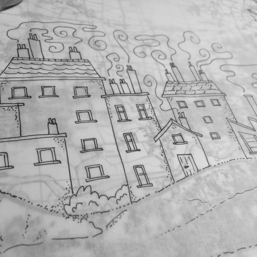 It actually created a nice balance with the relative opacity of the paper, so that there was an impression of the map behind, without obscuring or over-complicating the illustration on top.