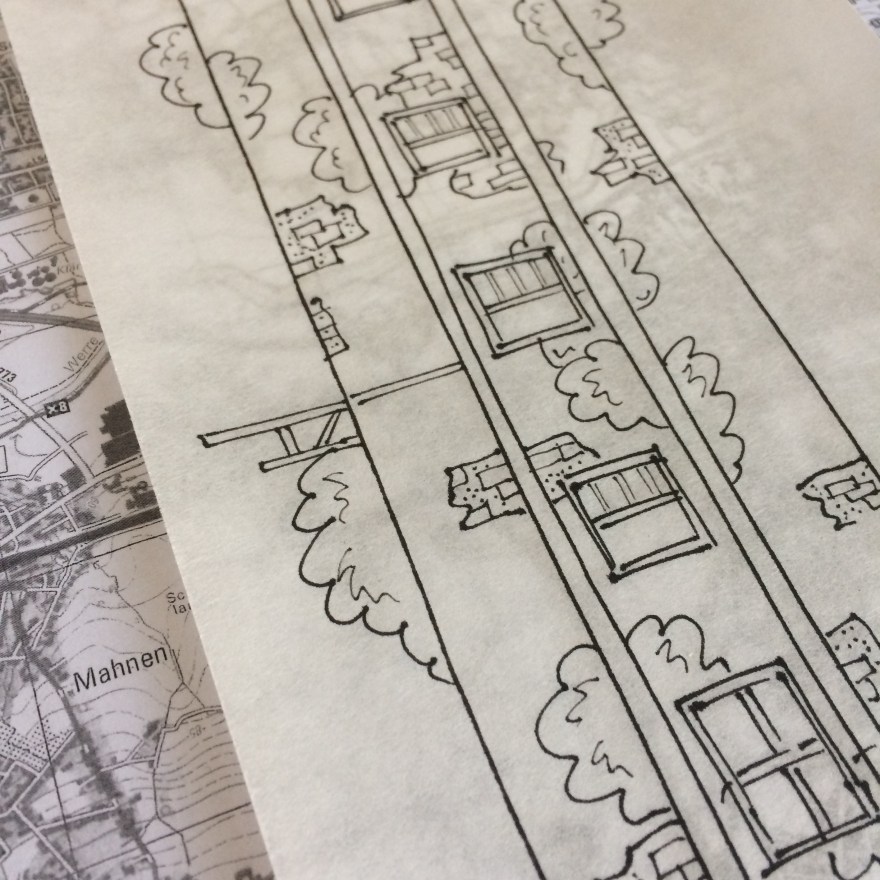 Therefore I combined a long sheet of rice paper with maps of Bad Oeyenhausen to allow both to be shown without impacting on the surface work itself.